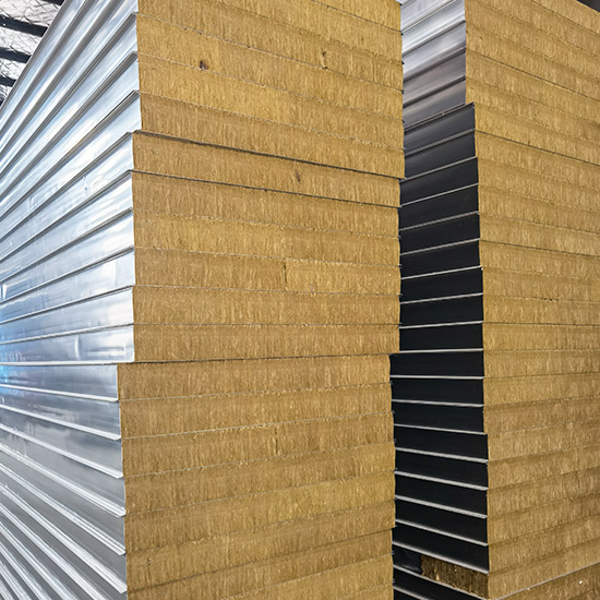 巖棉彩鋼夾芯板其芯材是以玄武巖及其它天然礦石等為主要原料,經(jīng)高溫熔融成纖維,加入適量粘結(jié)劑,固化加工而制成的。是同類(夾芯板系列)中耐火性能最強的一種新型防火板材。